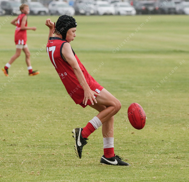 Cooper Perkins kicks Tasman forward in the under 14s. (475211_02)