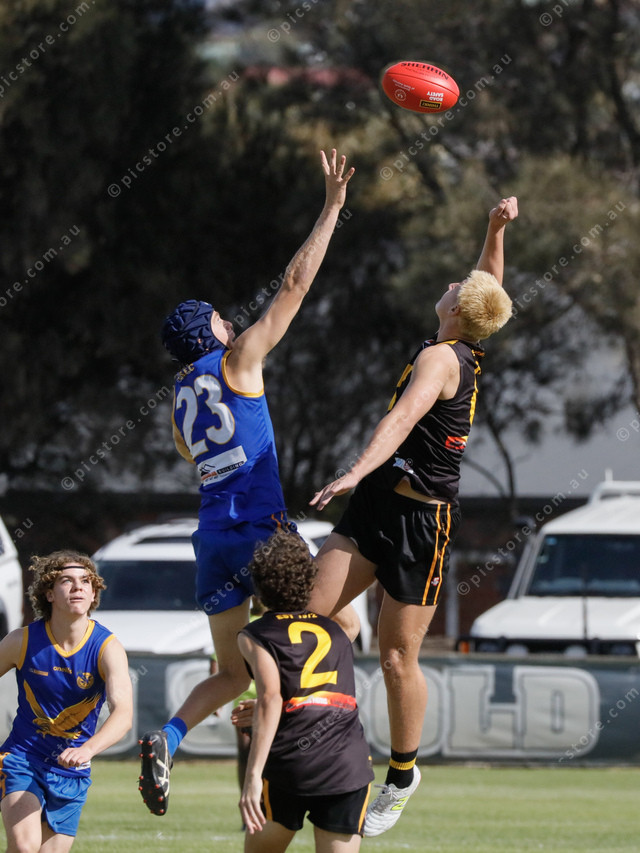 Lincoln South’s Jarrah Donovan and Boston’s Orlando Wade leap for the ball. (476730_11)