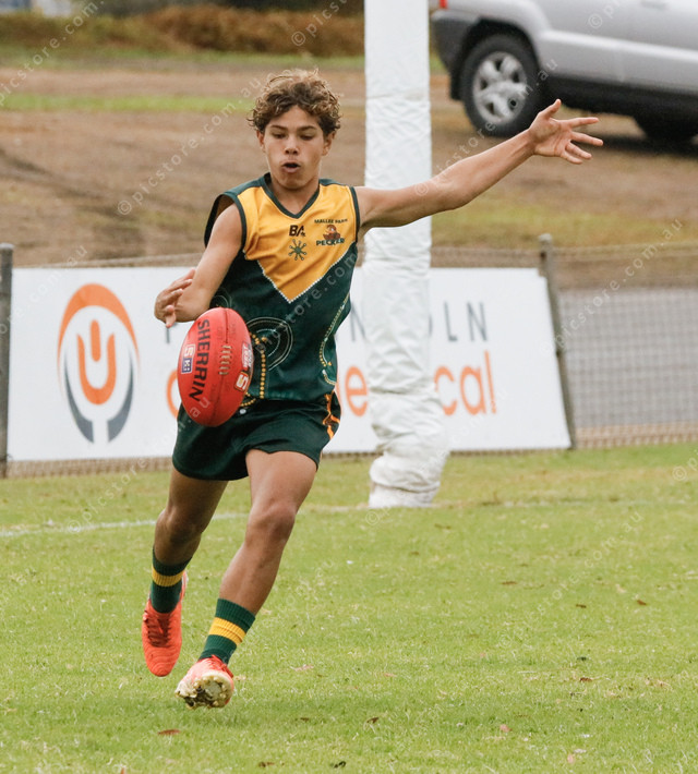 Cruz Miller kicks out of defence for Mallee Park under 17s. (479157_08)