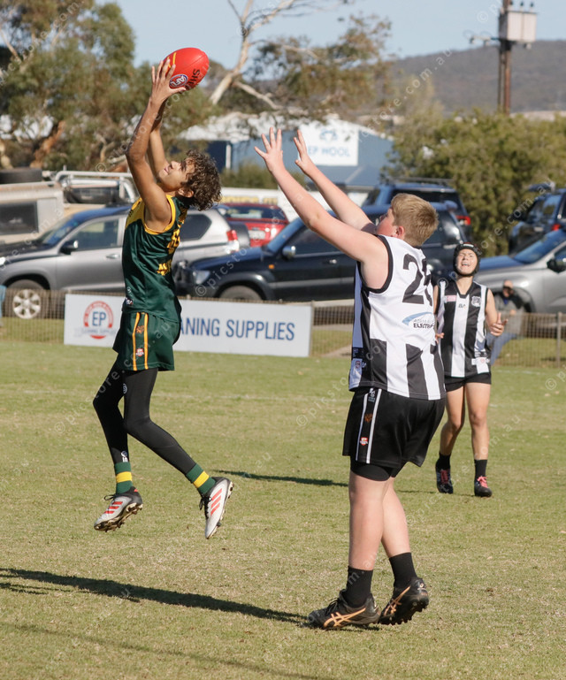 Lindsey McLean marks for Mallee Park ahead of Marble Range’s Sunni Elson in the under 14s. (486619_04)
