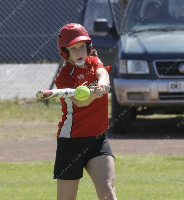 Squaws’ Bella Francis is about to smash the ball into the field. (515384_05)