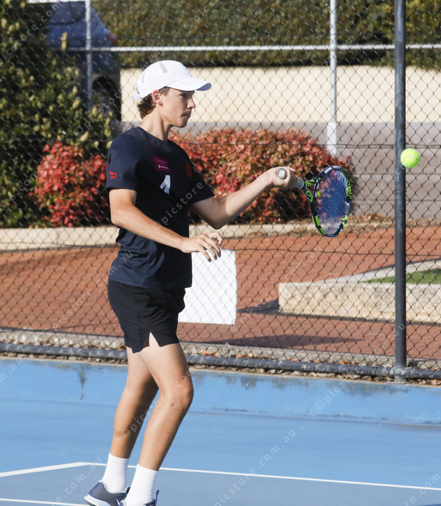 Javier Keatley returns the ball with a forehand shot. (535578_02)