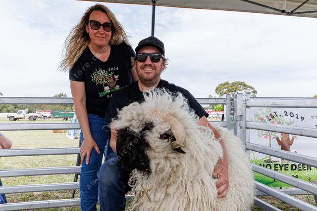 Nicole and Rob Knight of the ‘No Eye Deer Farm’, with Vinnie the ram. (511490_08)