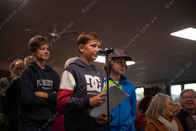 Karl Lang, supported by his friends, puts his proposal to the state government at Victor Harbor’s Country Cabinet on October 24, 2024. (Dani Brown: 528355_01)