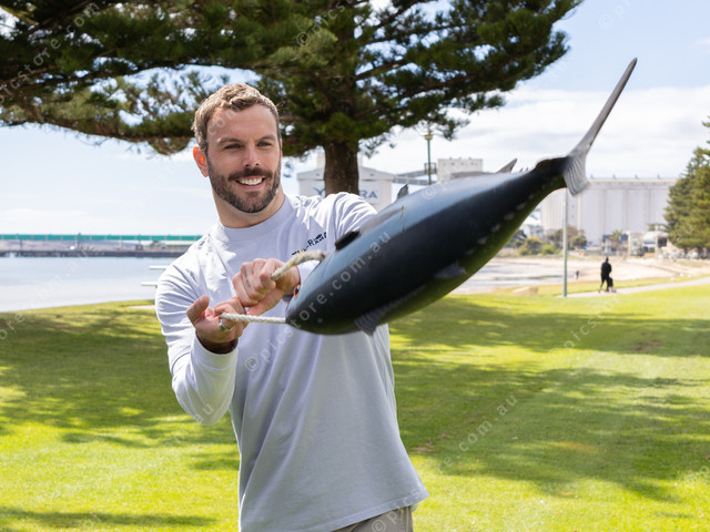 Port Lincoln’s champion Olympic swimmer Kyle Chalmers was announced as the official ambassador for Tunarama 2026. (512597_04)