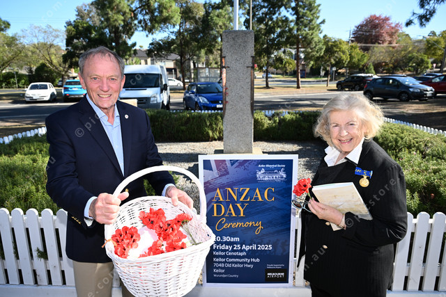 Keilor Cenotaph, upcoming Anzac day events. Pic of Fred Ackerman and Susan Jennison. Photo by Damjan Janevski. 471200_01