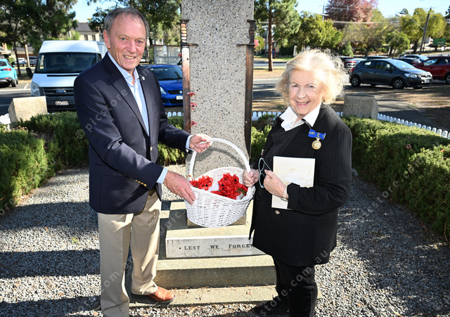 Keilor Cenotaph, upcoming Anzac day events. Pic of Fred Ackerman and Susan Jennison. Photo by Damjan Janevski. 471200_03