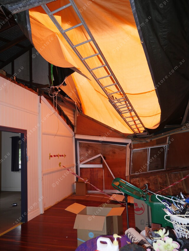 The large hole in the roof caused by a fallen tree from the 2 January 2025 ferocious storm. 459731_03