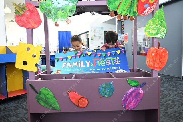 Family fiesta market at Dinjerra Primary School, Braybrook. Pic of year-1 students Marisol and Huey. (Damjan Janevski). 517047_02