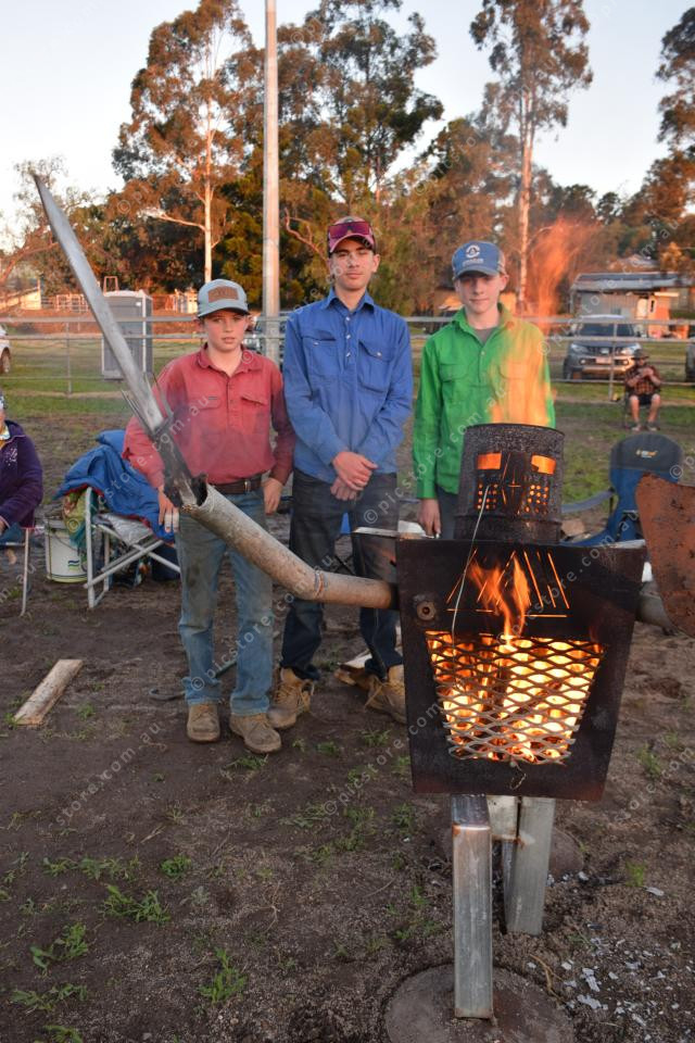 Harrison Vaughan and Rohan Bloomfield congratulated Walter Fox-Brosnan on his incredible fire sculpture that turned heads at Killarney Bonfire Night.
