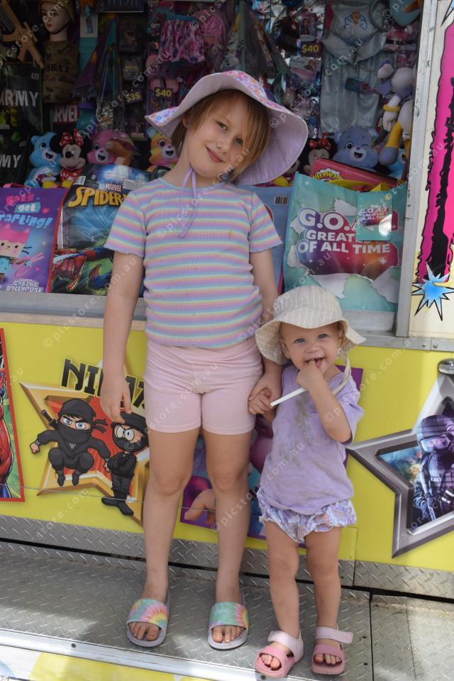 Picking the perfect showbag was not an easy task for Lucy Mae and Juniper.