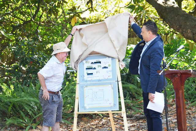 Knox Historical Society President Ray Peace and Manny Cicchiello Liberal candidate for Aston unveil the plans 461880_07