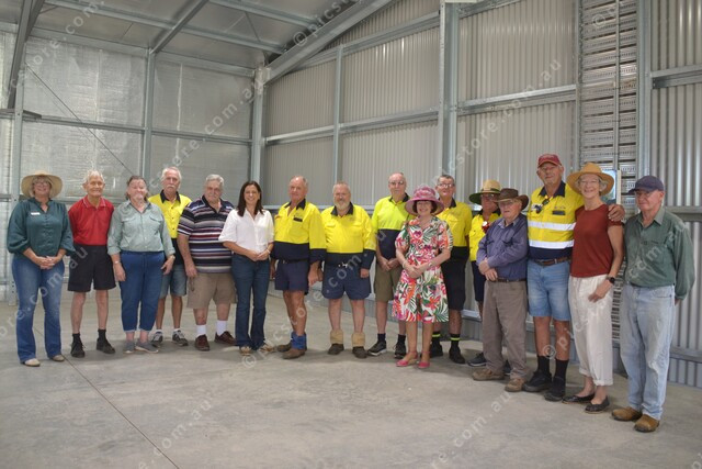 Kingaroy Men’s Shed members, Nanango MP Deb Frecklington and South Burnett councillors Linda Little, Mayor Kathy Duff and Cr Ros Heit celebrate the opening of the new shed. 463206_01