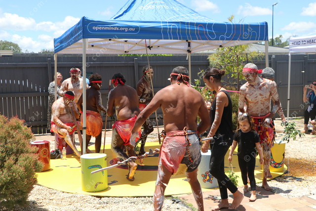 The Cherbourg Wakka Wakka Dancers enter the yarning circle for their performance. 525236_10