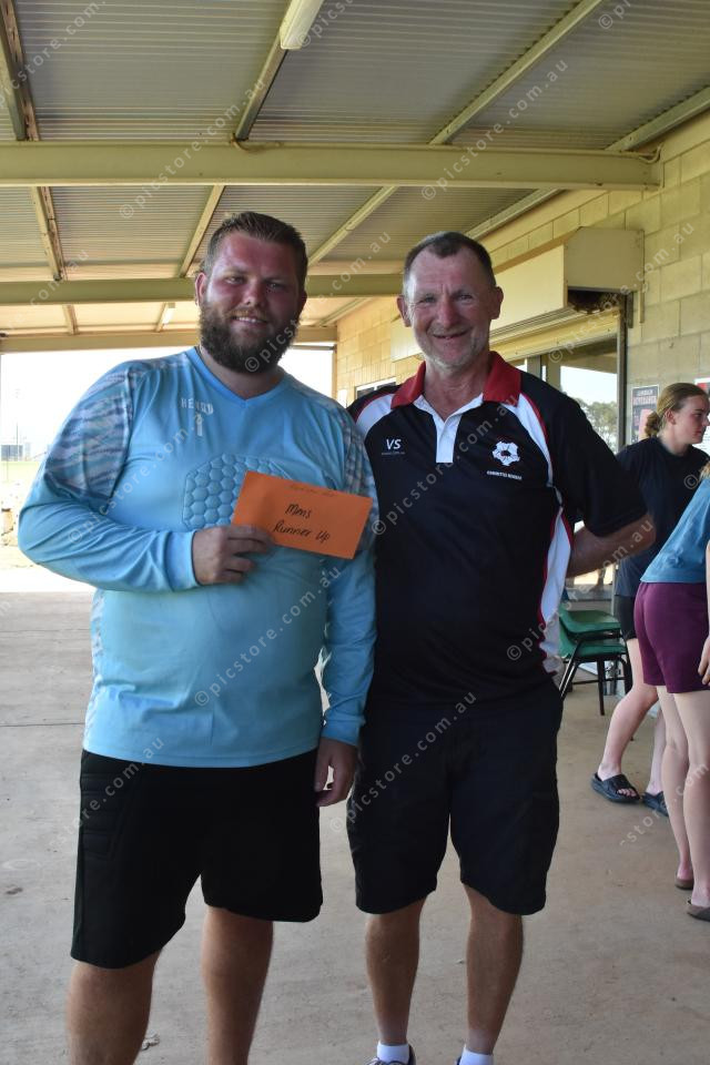 Blackstone Rovers captain Dylan Henderson accepted the men’s grand final runner-up prize from KSSC president Steve Copas. 532429_30