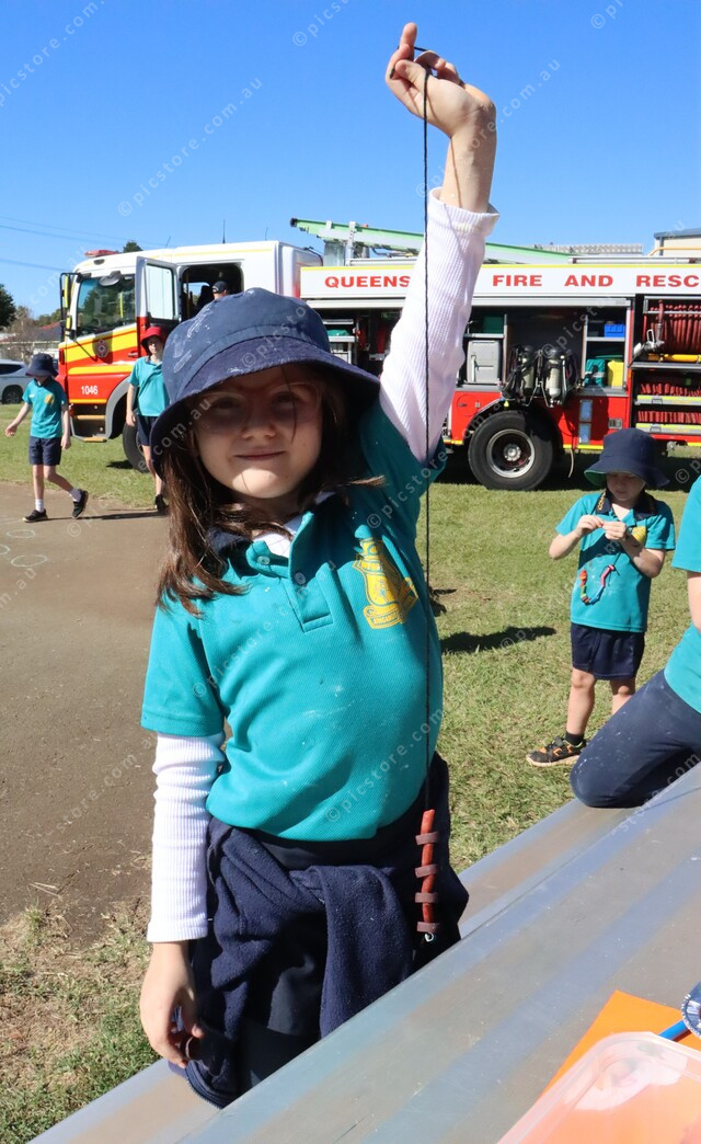 Gracie shows off her pasta necklace. 480024_07