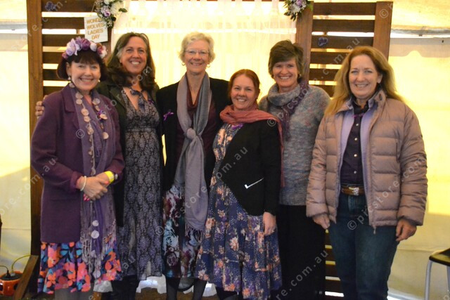 Mayor Kathy Duff, Claire Kapernick, Ros Heit, Susan Smith, Liz Nicholson and Cr Deb Dennien dressed in a pop of purple. 494313_04