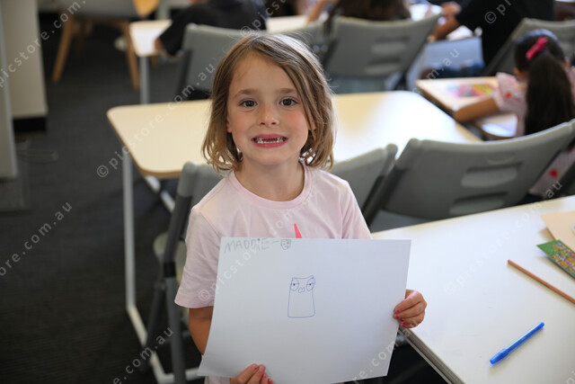 Lalor Library, school holidays special workshop with a children’s illustrator Ben Wood. Pic of Maddie (5). (Damjan Janevski). 529057_02
