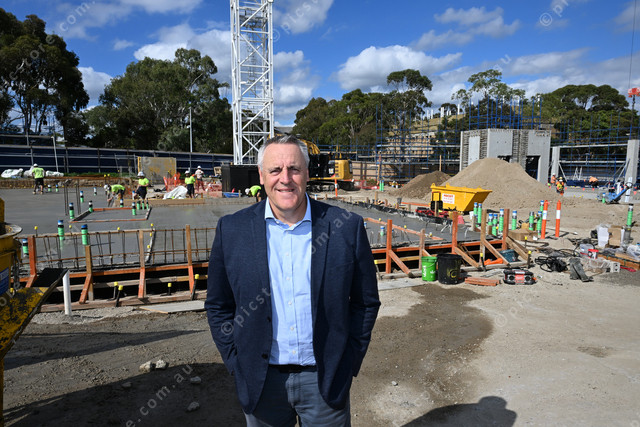 Pic of Professor Russ Hoye outside the building site for new clinical teaching facility at Latrobe University, Bundoora. Photo by Damjan Janevski. 470444_02