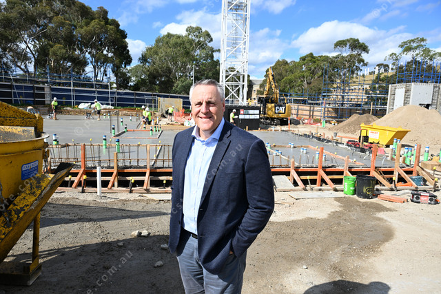 Pic of Professor Russ Hoye outside the building site for new clinical teaching facility at Latrobe University, Bundoora. Photo by Damjan Janevski. 470444_03