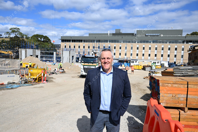 Pic of Professor Russ Hoye outside the building site for new clinical teaching facility at Latrobe University, Bundoora. Photo by Damjan Janevski. 470444_05