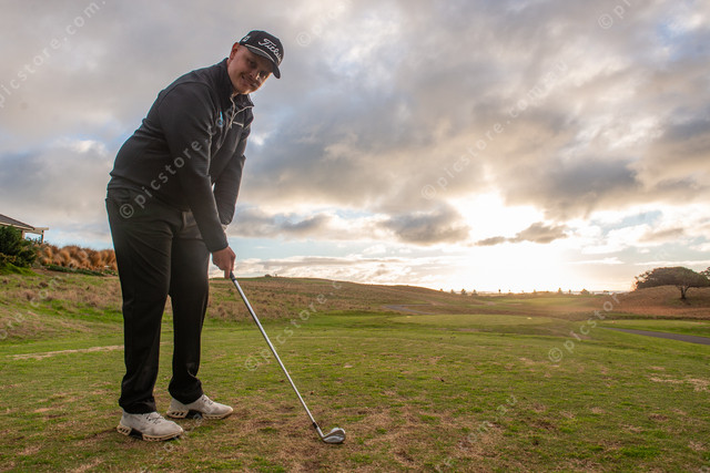 Links Lady Bay pro shop assistant George Vassiladis at the 17th hole, where golfers can try their luck at hitting a hole-in-one and scoring $10,000. (Dani Brown: 488420_02)