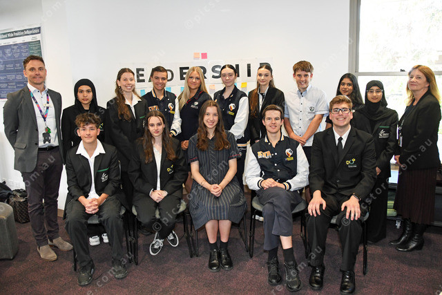 Back row Beau Rawlyk Officer Secondary College Principal, Ajeya, Indiana, Brady, Myla, Amber, Eden, Zak, Vaishnavi, Asma and Johanna Walker Edenbrook Secondary College Principal Front row Bailey, Abi, Tia, Tom and Lucas 520397_06