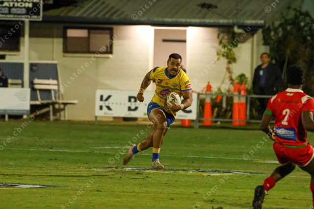 Yeppoon’s Bacho Salam charges to the Emu Park defence.