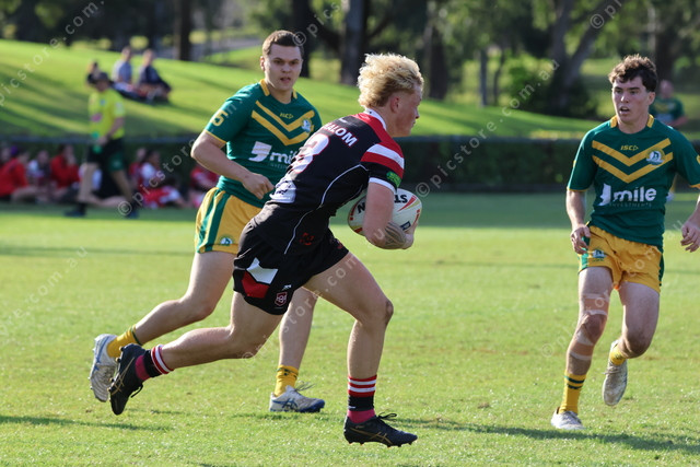 Shalom’s Kyan Edwards takes the ball across the defensive line.