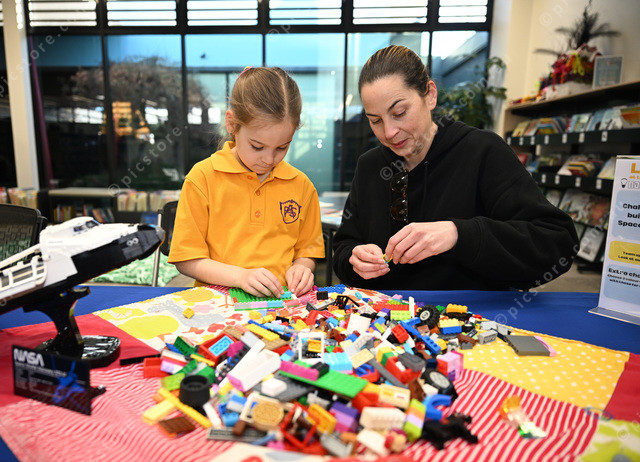 The Science Week LEGO Space Challenge at Altona Library. Pic of Aaliyah (6) and her mum Sarah Krstev. (Damjan Janevski). 494827_05