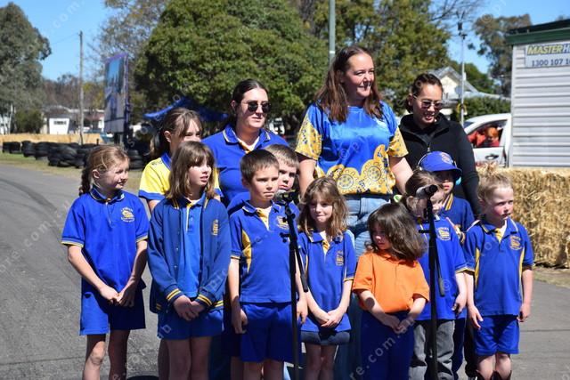 Students from Leyburn State School proudly performed the national anthem at the 2025 Historic Leyburn Sprints.
