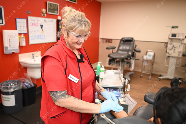 Lifeblood need blood donations this June. Pic of nurse Tana-Marie henry with a blood donor. Photo by Damjan Janevski. 482462_03