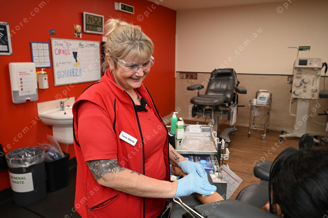 Lifeblood need blood donations this June. Pic of nurse Tana-Marie henry with a blood donor. Photo by Damjan Janevski. 482462_05