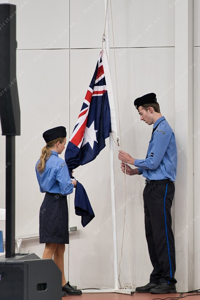 Gawler Airfield Squadron cadets raise the flag. (530709_04)