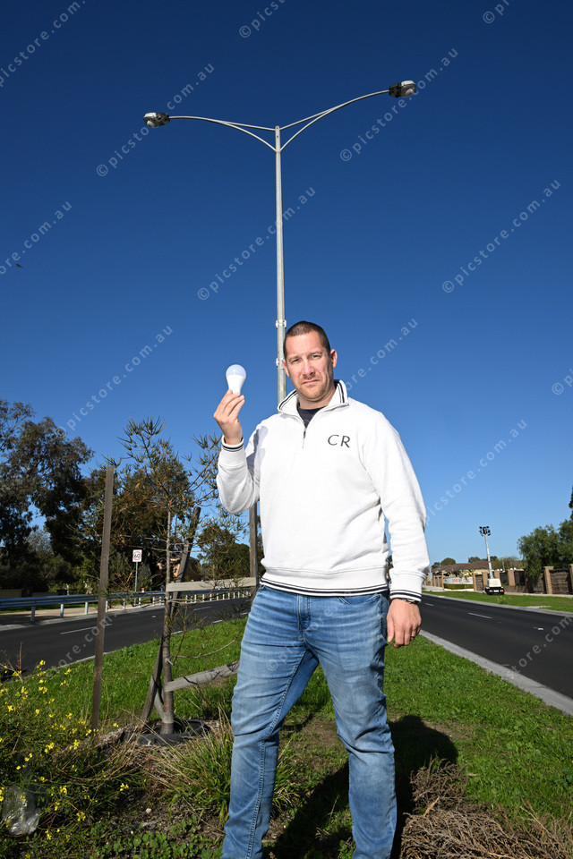 Pic of Dwayne Kelly at Point Cook Road and Sneydes Road intersection which is still waiting on lights to start working. (Damjan Janevski). 490634_02