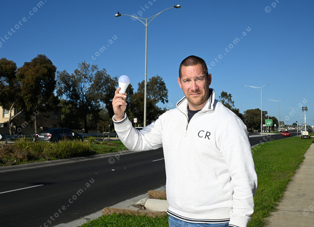 Pic of Dwayne Kelly at Point Cook Road and Sneydes Road intersection which is still waiting on lights to start working. (Damjan Janevski). 490634_04