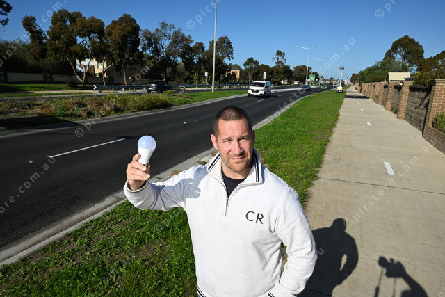 Pic of Dwayne Kelly at Point Cook Road and Sneydes Road intersection which is still waiting on lights to start working. (Damjan Janevski). 490634_05