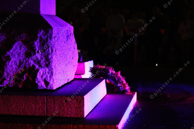 A lone wreath at the base of the Cenotaph lit by surrounding lights. (474152)