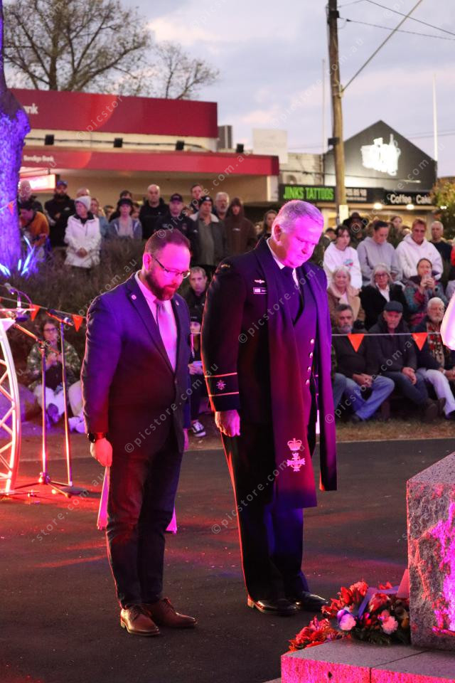 Veteran Jason Issac and Pastor Miles Fagan stand in a moments silence in honour of the fallen. (474152)