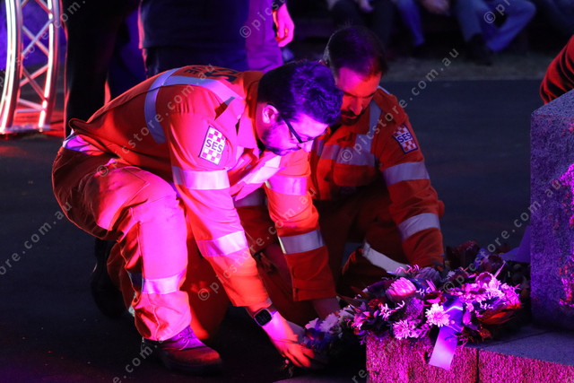 Lilydale SES volunteers placing a wreath on behalf of the emergency service organisation. (474152)
