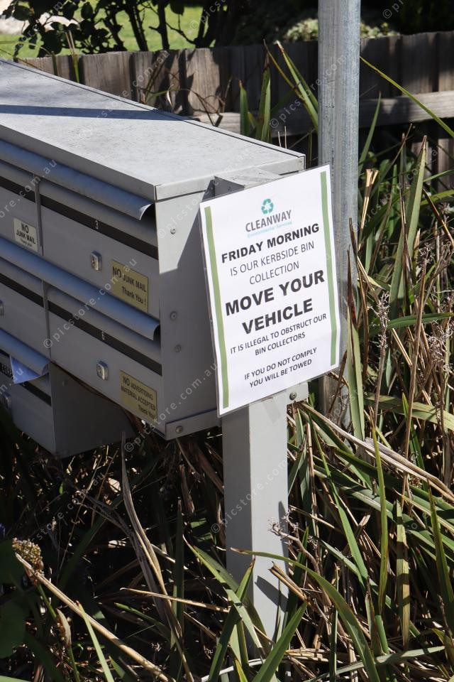 Signs about bin collection and parking have had to be placed on Baker Street letterboxes. (513072)