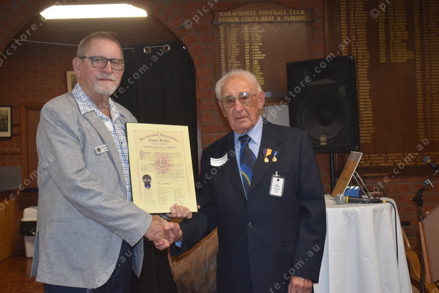 Jeff McDonald accepts the charter from Eric Roughana
