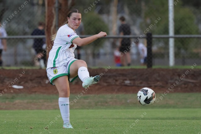 Rebecca Hlinak passes the ball with her left foot. 468788_05