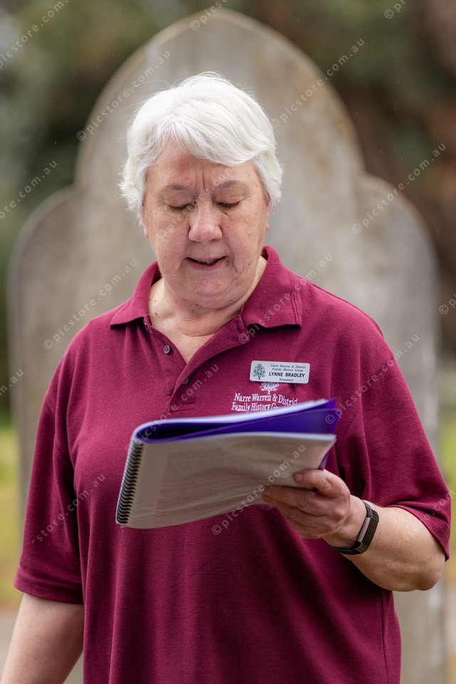 Lynne reading to some of the participants about certain graves.