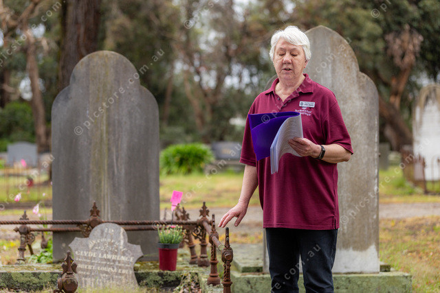 Lynne reading to some of the participants about certain graves.