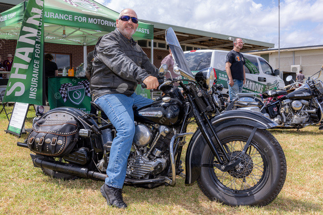 Ronnie from Frankston on his rare 1947 Harley Davidson Knucklehead.