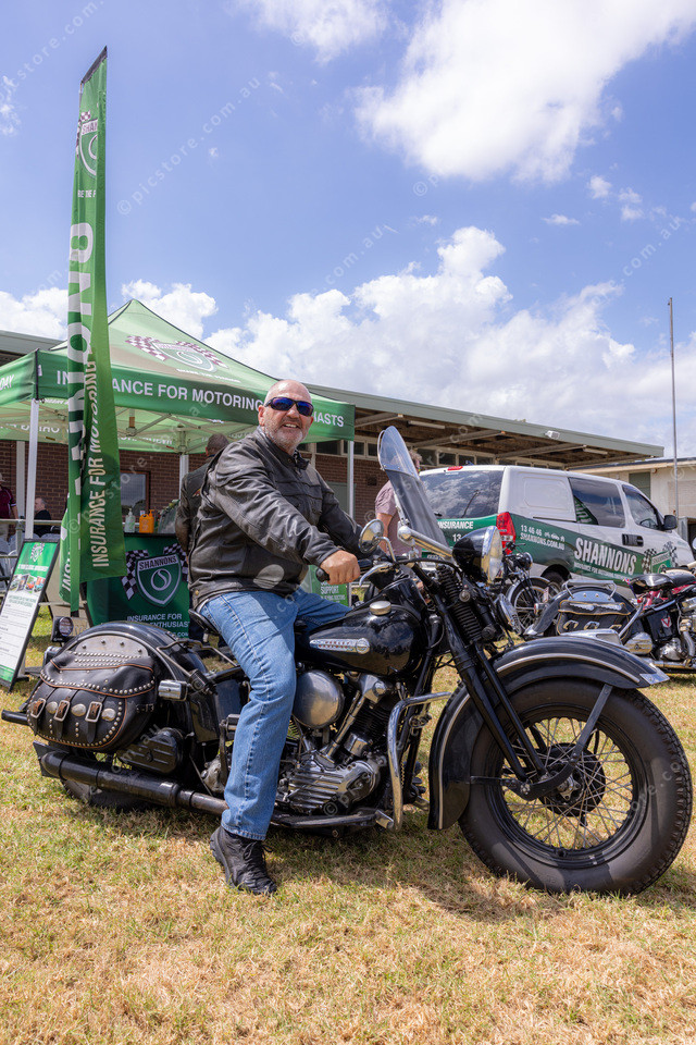 Ronnie from Frankston on his rare 1947 Harley Davidson Knucklehead.
