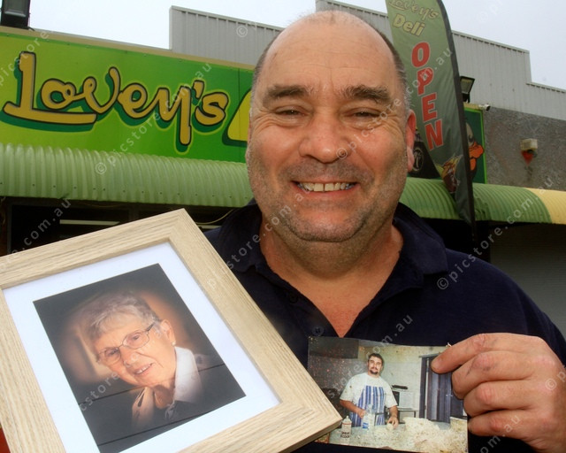 MEMORIES: Damian Crowe with a photo of his late mum and himself on the first day in the bakery. (PIC: PHIL WILLIAMS 481293_08)