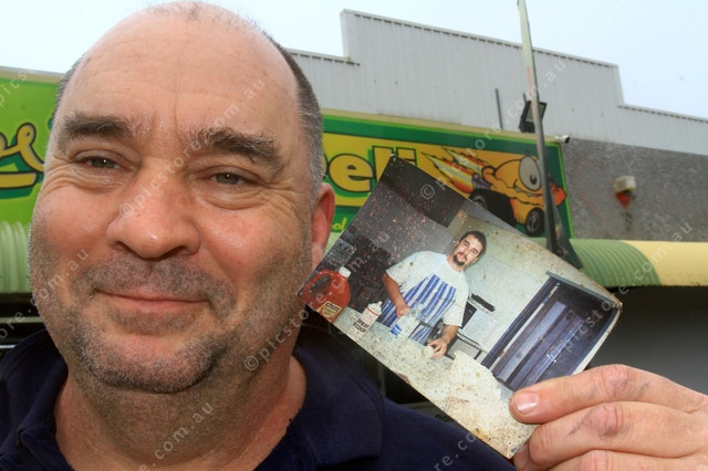 YOUNGER: Damian Crowe with a photo of his younger self when he first started at Lovey’s. (PIC: PHIL WILLIAMS 481293_10)