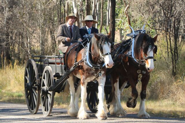 A horse-drawn wagon transported Lucy Needer’s casket to the Booie Cemetery on Thursday afternoon, with over 50 riders trailing behind on their own mounts. (Julian Lehnert: 485478_02)